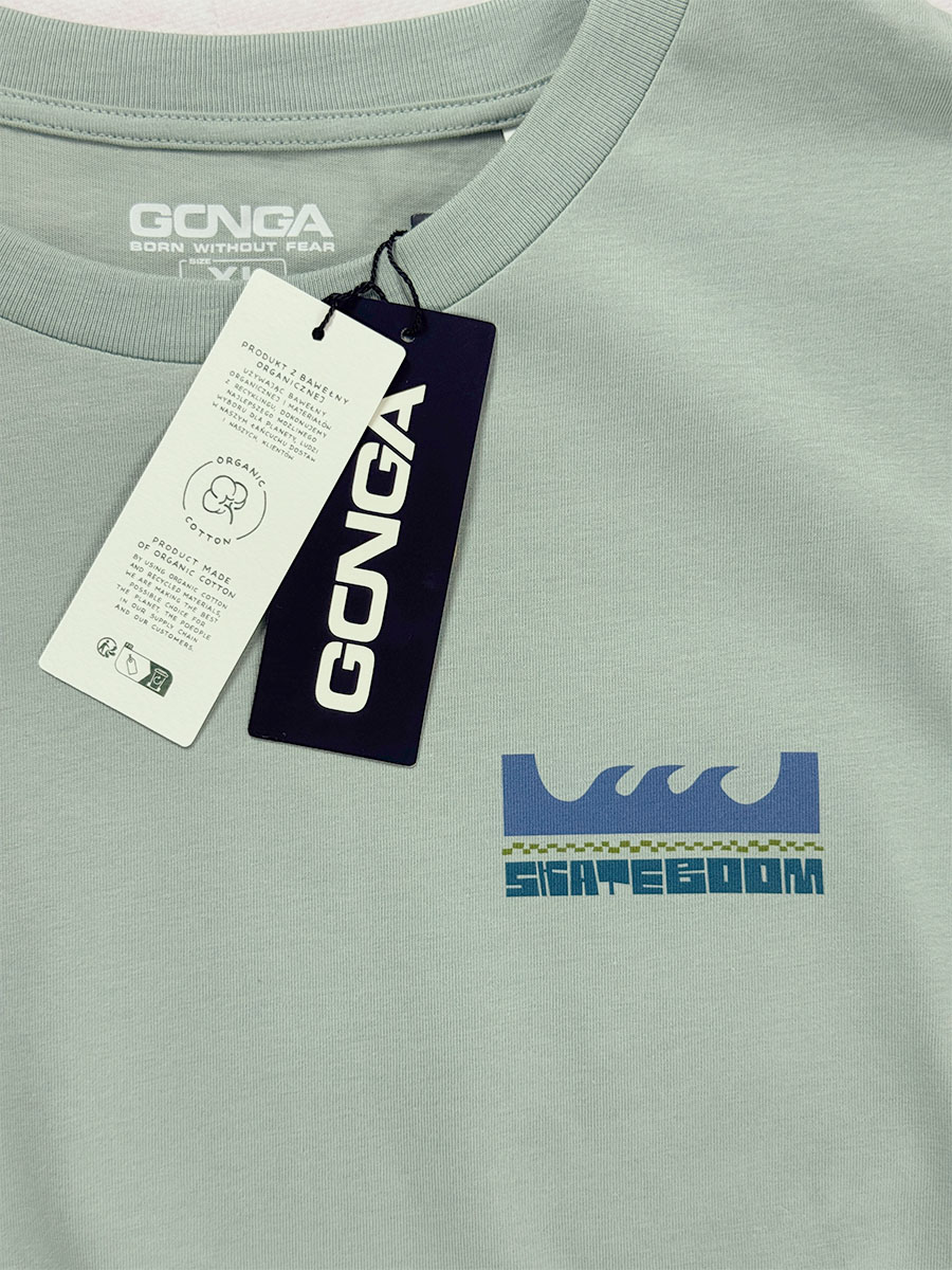 Zielona koszulka z kolorową grafiką z kolekcji Skateboom powstała we współpracy z GONGA Surf — marką znaną z dopracowanych produktów i wysokiej jakości materiałów. To model z wyższej półki, zaprojektowany tak, żeby dobrze wyglądał i wytrzymywał regularne noszenie.