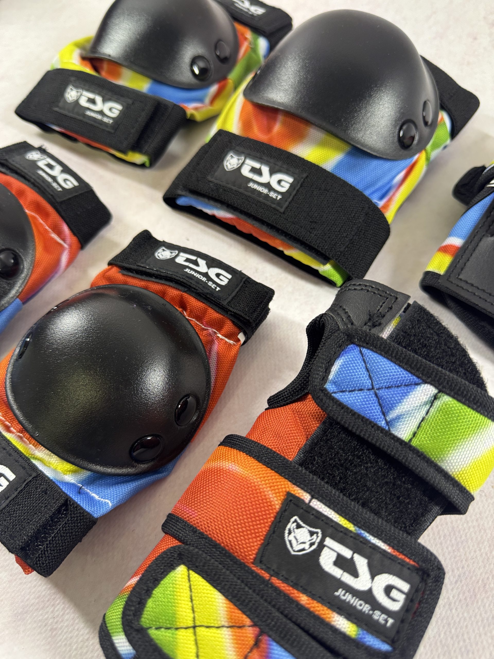 TSG Junior Set Lollipop to wygodna ochrona dla dzieci jeżdżących na desce, rolkach i hulajnodze. Solidna skorupa, pianka EVA i szybkie zapięcie.